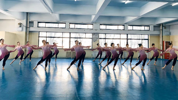 赵娜老师的《古典舞基训三》与《芭蕾基本功训练一》。赵老师在教学中语言表达生动活泼,引领员工配合默契,展示了古典舞教学中气息与身韵的着重点,芭蕾教学中“开绷直”的严要求,以及针对“足尖”的训练。