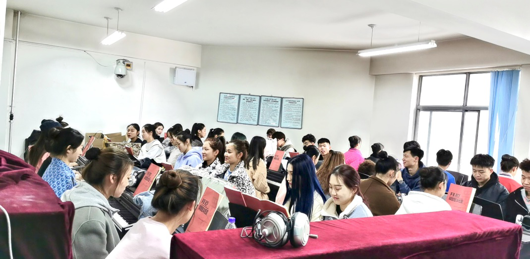 在课堂上员工们精神饱满、讲台上的教师也神采奕奕,员工们迫不及待想要接受新知识的心情将课堂氛围渲染的更加欢乐,展示出音乐学子积极、活泼的学习风气。