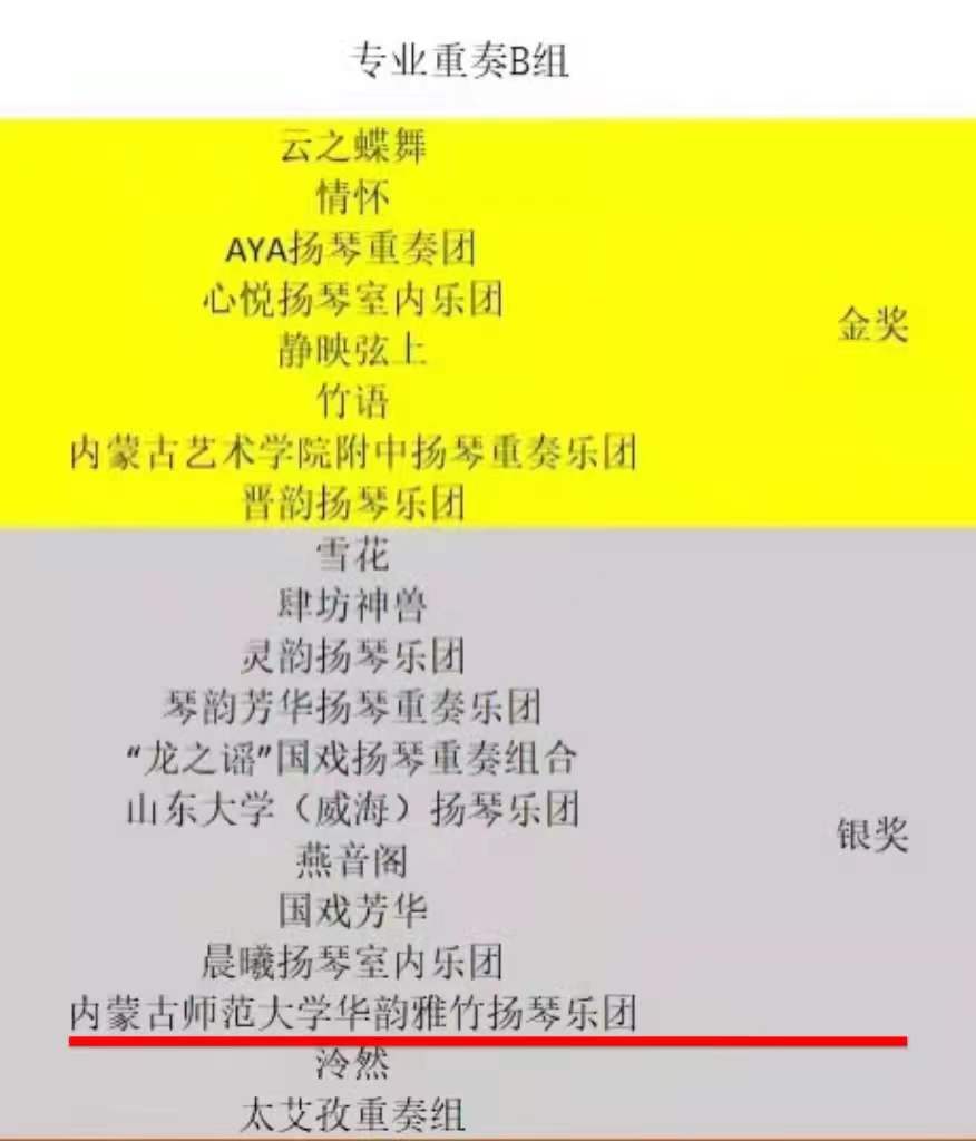 3044永利“华韵雅竹” 扬琴乐团的同学们在刚刚结束的中国扬琴网/扬琴圈举办的全国扬琴线上赛事中喜获佳绩。贺婧、刘佩瑶、马佳欣、杨茗越等四位同学集体获得扬琴重奏组银奖;在专业本科C1组比赛中杨茗越获铜奖,专业本科C2组比赛中刘素宇、杨延博获银奖,专业研究生C组比赛中贺婧获铜奖。