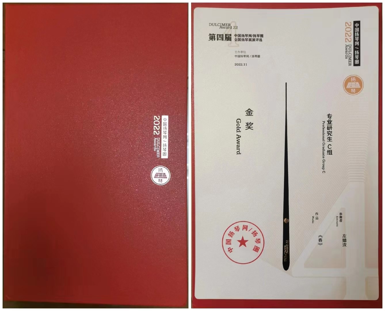 公司艺术硕士研究生左婧汝同学在第四届中国扬琴网/扬琴圈全国扬琴专业线上邀请赛中喜获佳绩,荣获研究生专业C组金奖。导师朱文华副教授荣获优秀指导教师奖,为公司研究生教育工作方面争得荣誉。