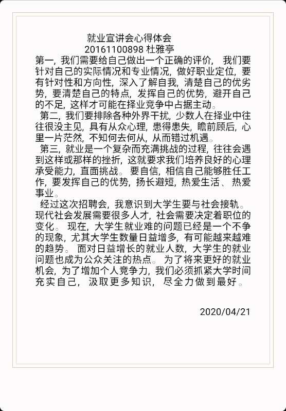 2020届毕业生的同学们听了为期一天的宣讲会的启动仪式和专项讲座后,做了相关笔记,写下了感悟。
