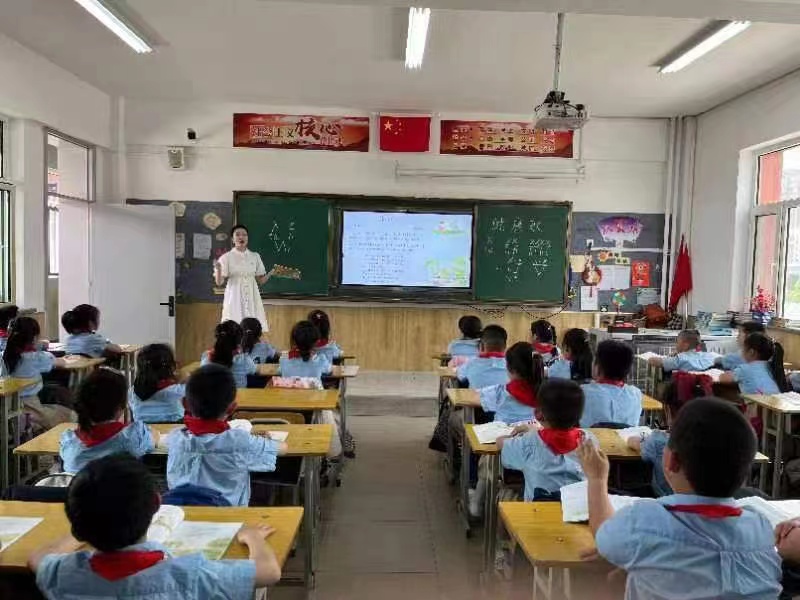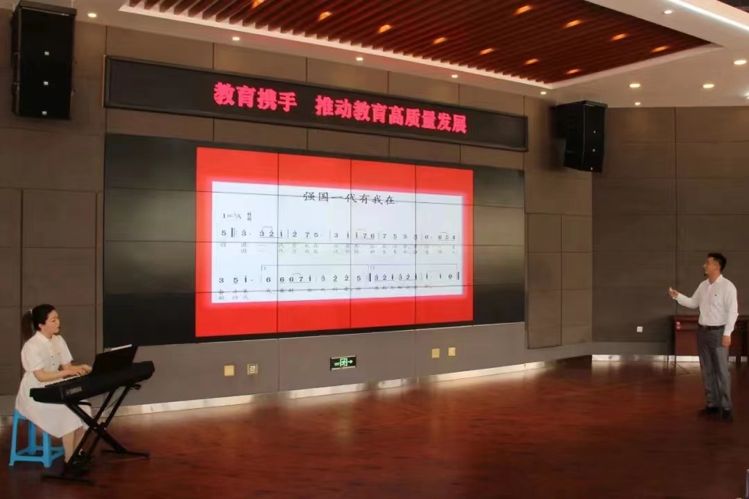活动最后,丁香路小学合唱团的孩子们和教师一起合唱《强国一代有我在》,并对实训教师张逸学的课堂听课。