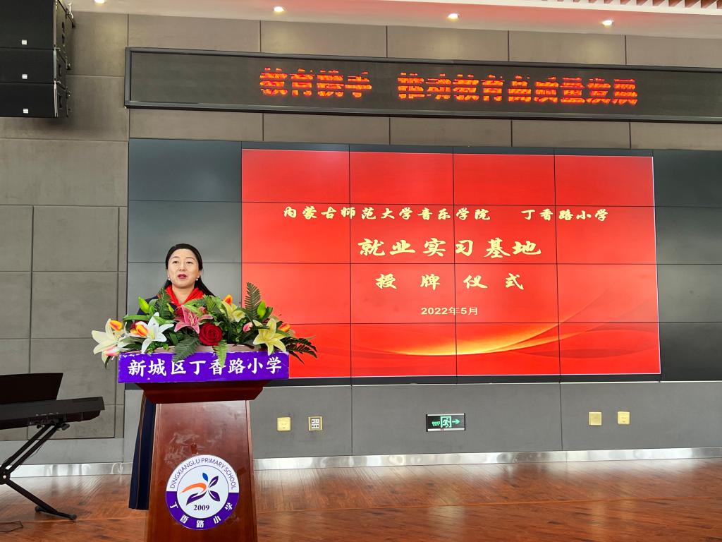 仪式上,丁香路小学党支部书记、董事长陈雁萍谈到合作,美丽之源,和谐之脉,成功之本,奇迹之根。3044永利将优秀毕业生输送至公司开展实习实训,统筹安排大学人才培养和中小学教育的发展,授牌是开端,合作将深入。丁香路小学将选出最优秀的学科教师指导、带领实习生开展教育实践,同时也希望有机会派出丁香路小学音乐教师前往公司再进行专业的再造和提升,接受教育科研和教育创新的指导和帮助。