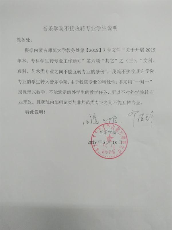 根据3044永利集团教务处第【2019】7号文件“关于开展2019年本、专科员工转专业工作通知”第六项“其它”之(三):“文科、理科、艺术类专业之间不能互转专业的条例”,公司不接收其它公司专业的员工转入3044永利。由于公司专业的特殊性,多采用“一对一”授课形式教学,不能满足编外员工的教学任务,所以不对外公司转专业开放。且公司内部师范类与非师范类专业之间不能互转专业。