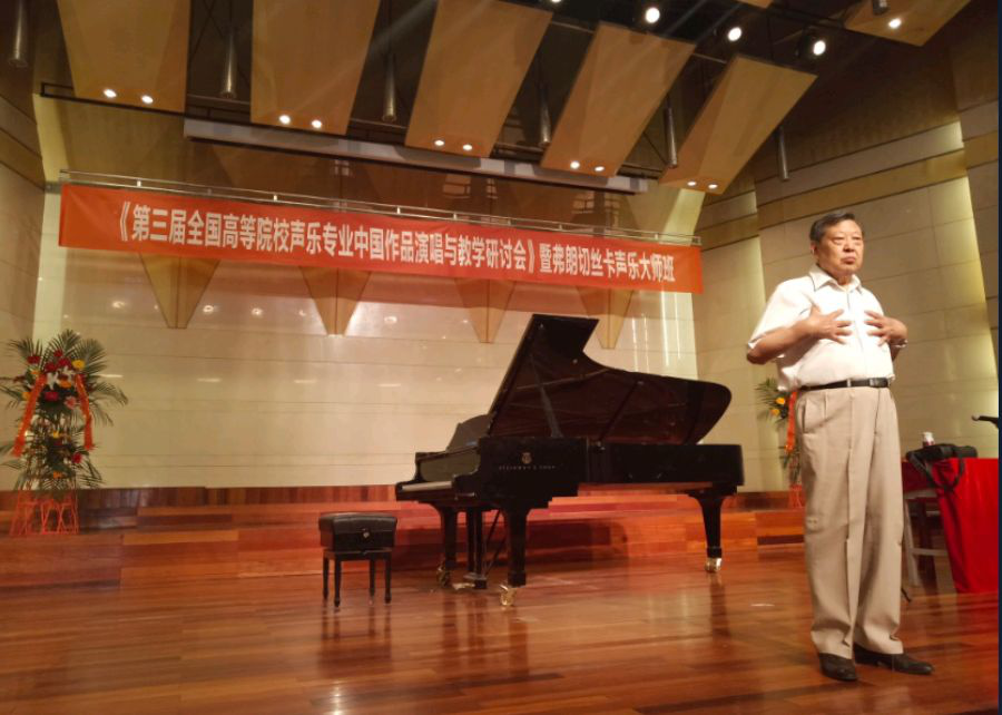 6月12日上午8:30—12:30肖黎声教授讲述了《美声演唱法演唱中国歌咬字行腔的探索》。