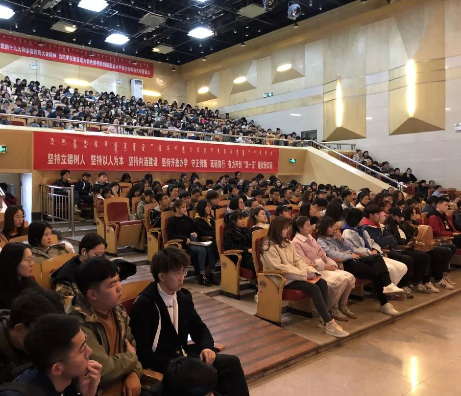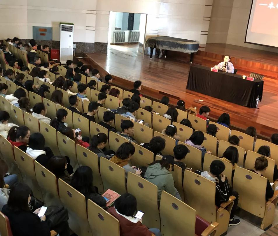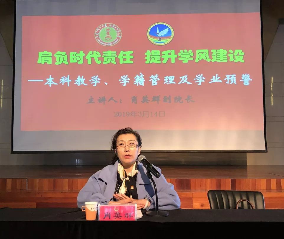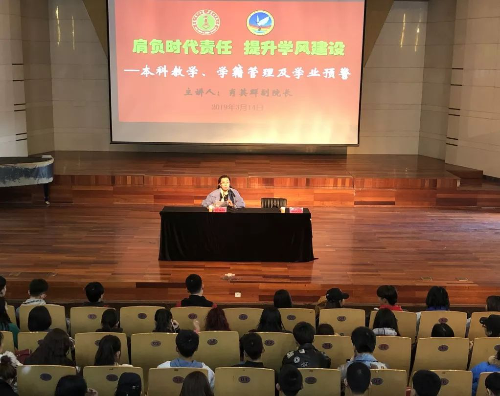 2019年3月14日中午12点30分由公司肖英群副经理主讲的“肩负时代责任,提升学风建设”――本科教学、学籍管理及学业预警专题讲座在音乐厅开展。