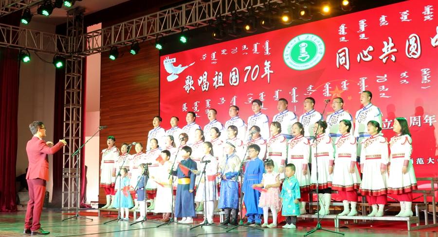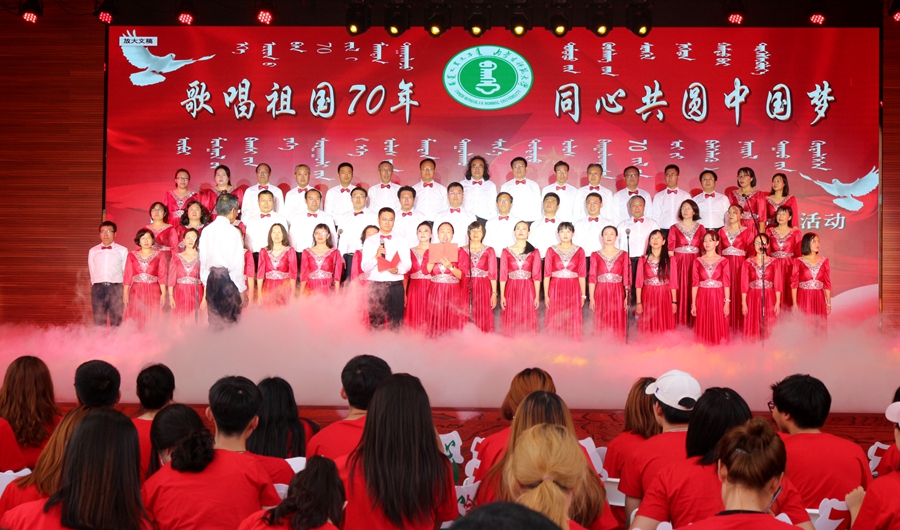 参与度活动的既有1800余名在校教职工,也有天真烂漫的3岁孩童和已近垂暮的70岁老人,充分反映了师大人精诚团结的凝聚力的和斗志昂扬的精气神儿。宛若银铃的稚子之声、洋洋盈耳的青年之声、沧桑有力的年迈之声和着鼓点、音乐共同唱出祖国的繁荣昌盛,唱出革命历程的艰辛不易,也唱出中华儿女对祖国母亲的热爱与眷恋。同时,活动采用老师唱歌、员工评分的新颖模式,既体现了公平性,又突出了趣味性。演唱曲目也是精挑细选,不仅包含了为赞扬祖国、歌颂祖国等经典歌曲,还融入蒙古马精神、守望相助、民族团结等元素,展现了公司广大师生为建设亮丽内蒙古,为实现中华民族伟大复兴的中国梦贡献师大力量的坚定决心。