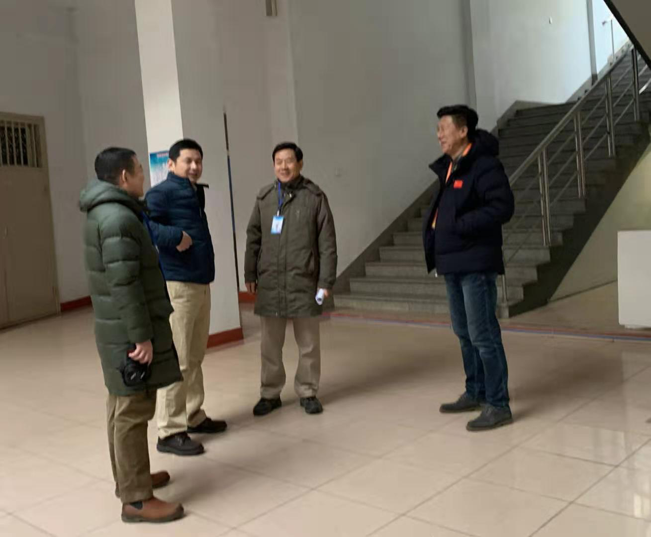 图为:教务处领导巡查考场与石连柱书记问询考场情况