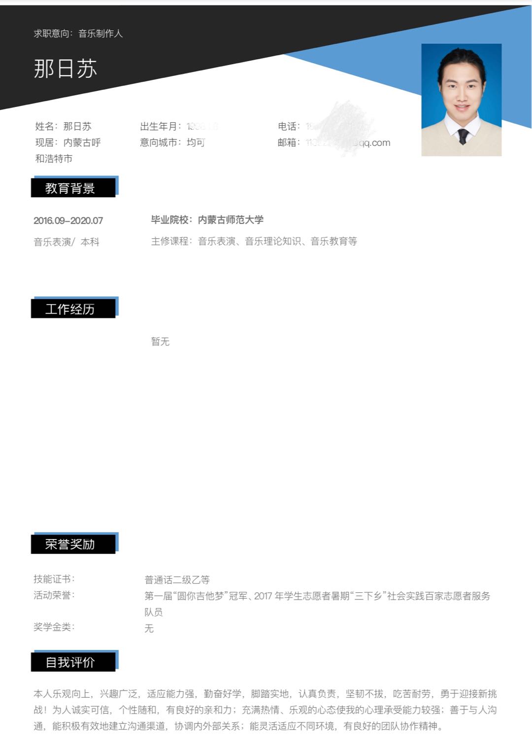 3044永利“2020届毕业生就业简历”专栏(器乐系)