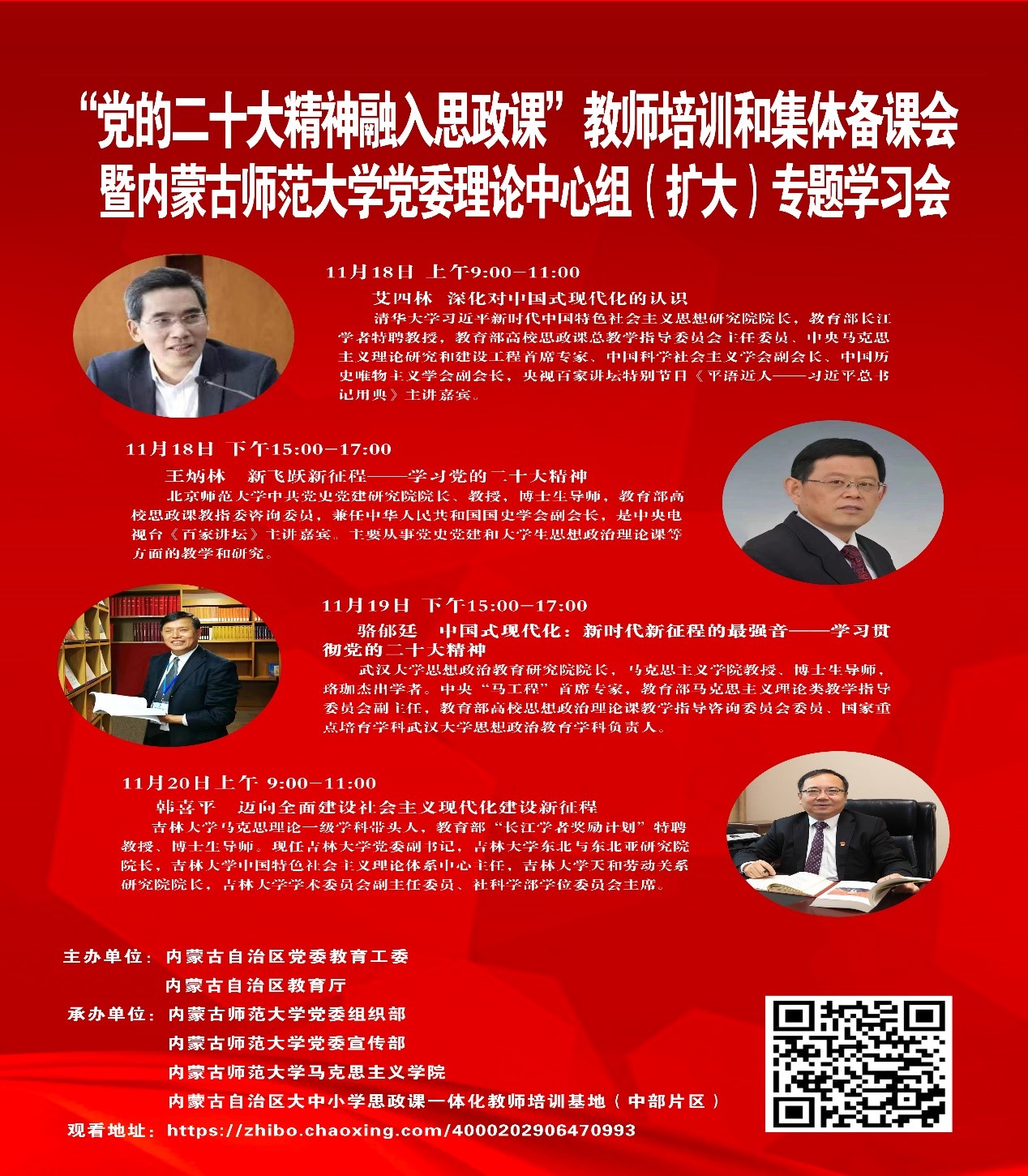 11月18日—11月20日,公司党委组织全体教职工通过线上方式参加“党的二十大精神融入思政课”教师培训和集体备课会暨3044永利集团党委理论中心组(扩大)专题学习会。本次会议为期三天,邀请了清华大学艾四林教授、北京师范大学王炳林教授、武汉大学骆郁廷教授、吉林大学韩喜平教授作专题讲座。学习会由公司党委副书记、董事长李树林主持。