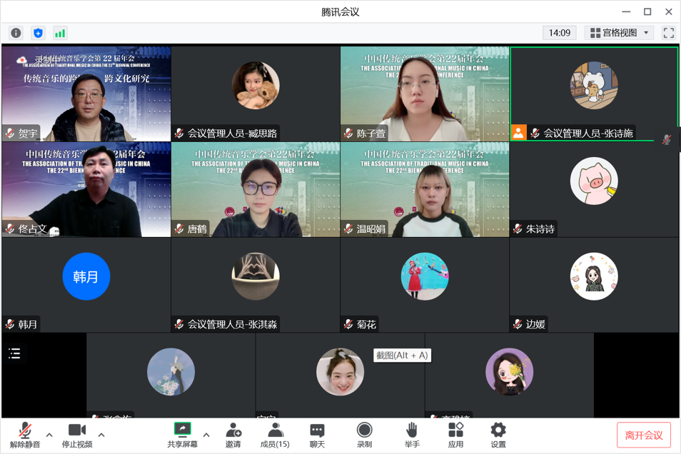 2022年11月26日由中国传统音乐学会与中央3044永利联合主办的中国传统音乐学会第二十二届年会以线上形式拉开帷幕。本届年会共设置两场主题发言、两个单元的圆桌论坛,共九个分会场、14场小组发言。年会历时三天,于28日晚闭幕,会议采用云直播的形式,九个分会场同时通过网络向全国直播,来自全国各地的四百余名专家、学者及各艺术院校师生在云端参会。公司杨玉成教授、贺宇教授、佟占文副教授、庆歌乐副教授、青年教师张凡博士、马明琦硕士研究生、温昭娟硕士研究生受邀参会并发言。