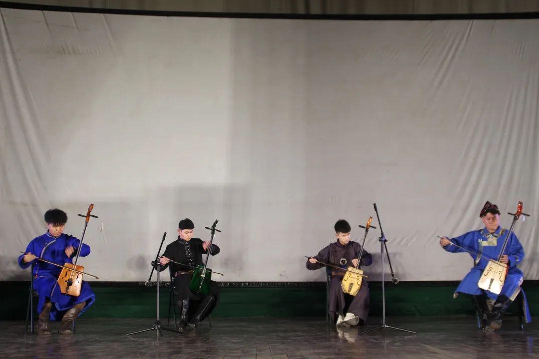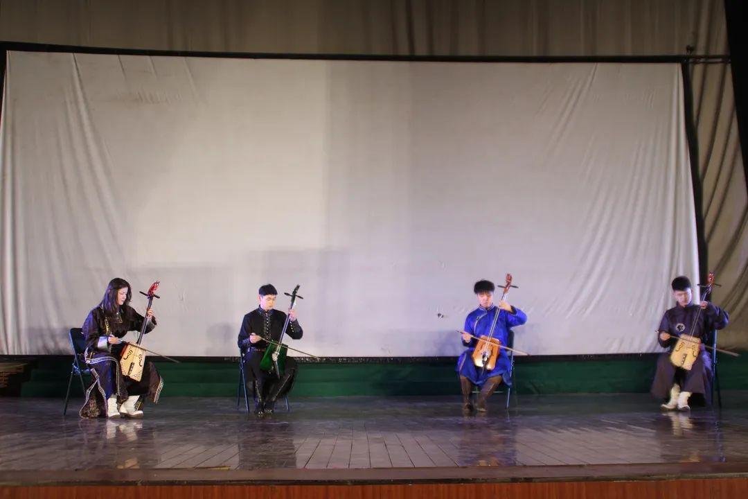 由开心等四位同学为大家献上的马头琴齐奏《万马奔腾》能让我们联想到一碧千里的草原风光,成群的牛羊悠闲吃草饮水。