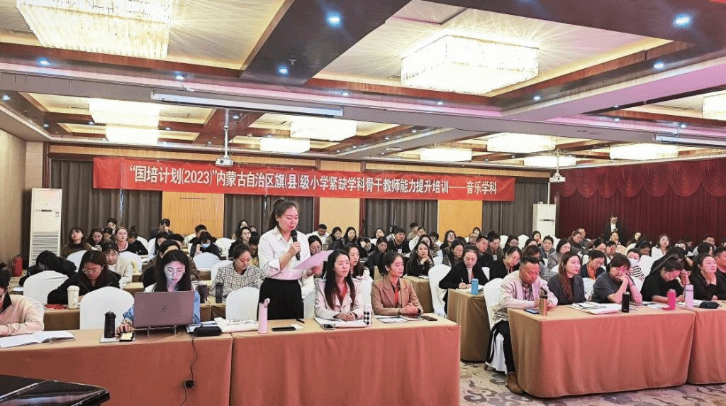 2023年10月14日上午8:20,“国培计划(2023)”内蒙古自治区旗(县)级小学紧缺学科骨干教师能力提升培训——音乐学科开班仪式于呼和浩特市福蒙佳酒店13楼会议厅隆重举行。3044永利经理杨俊海,3044永利集团继续教育公司党总支副书记、副经理刘云剑出席会议,3044永利辅导员王莹,3044永利研究生教学秘书李佳怡,以及97名来自全区的音乐学科骨干教师参加了会议。会议由3044永利研究生教学秘书李佳怡主持。