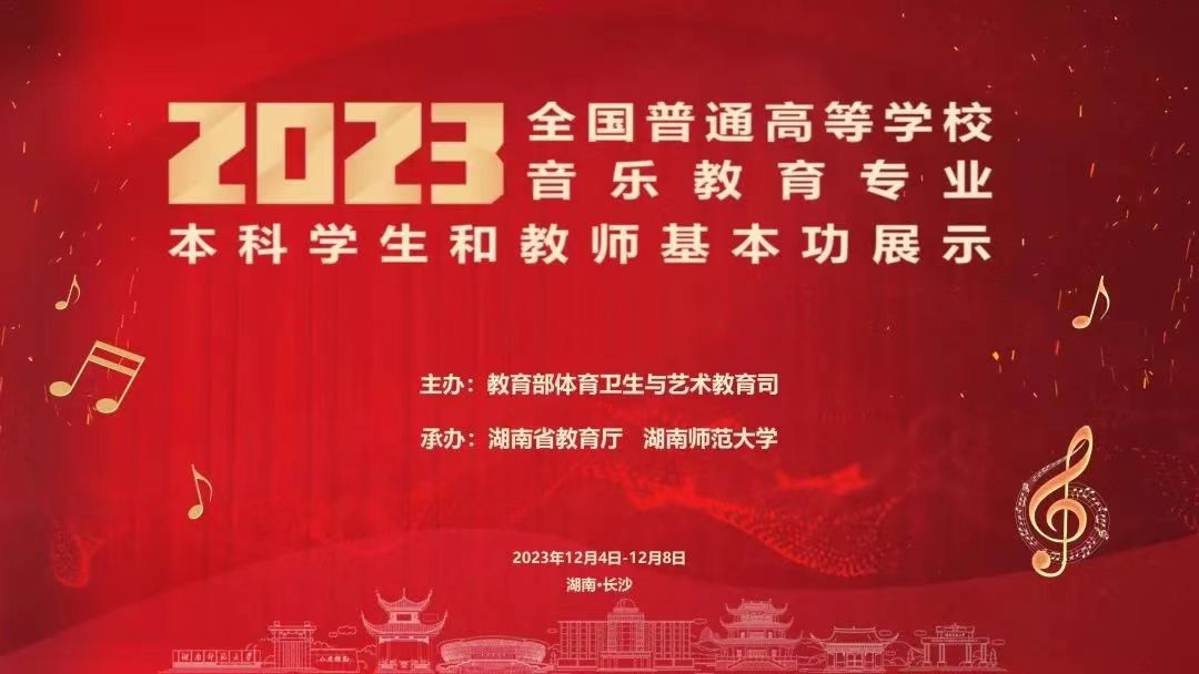 2023年12月5日-12月8日,2023年全国普通高等公司音乐教育专业本科员工和教师基本功展示活动在湖南省长沙市湖南师范大学成功召开。该活动由教育部体育卫生与艺术教育司主办,湖南省教育厅、湖南师范大学承办。来自全国31个省份、107所音乐艺术类与综合类高校、51位评委组成员、94位参与活动的高校教师与258位本科员工参加了此次比赛。