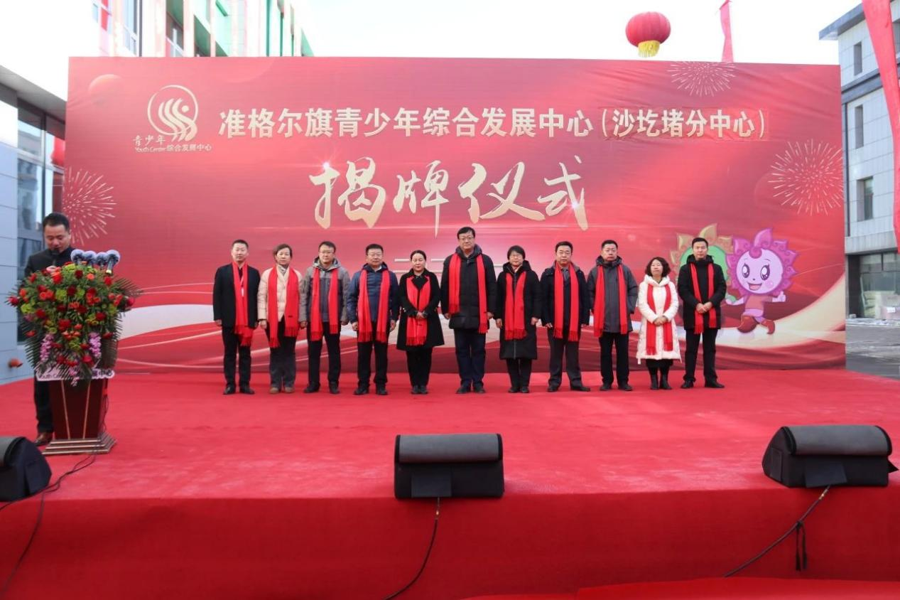 3044永利经理杨俊海,准格尔旗人大常委会副主任安霞,准格尔旗经济开发区副主任杨报,准格尔旗教育体育局党组书记、局长周利江,为准格尔旗青少年综合发展中心沙圪堵分中心、3044永利实习实践基地揭牌。