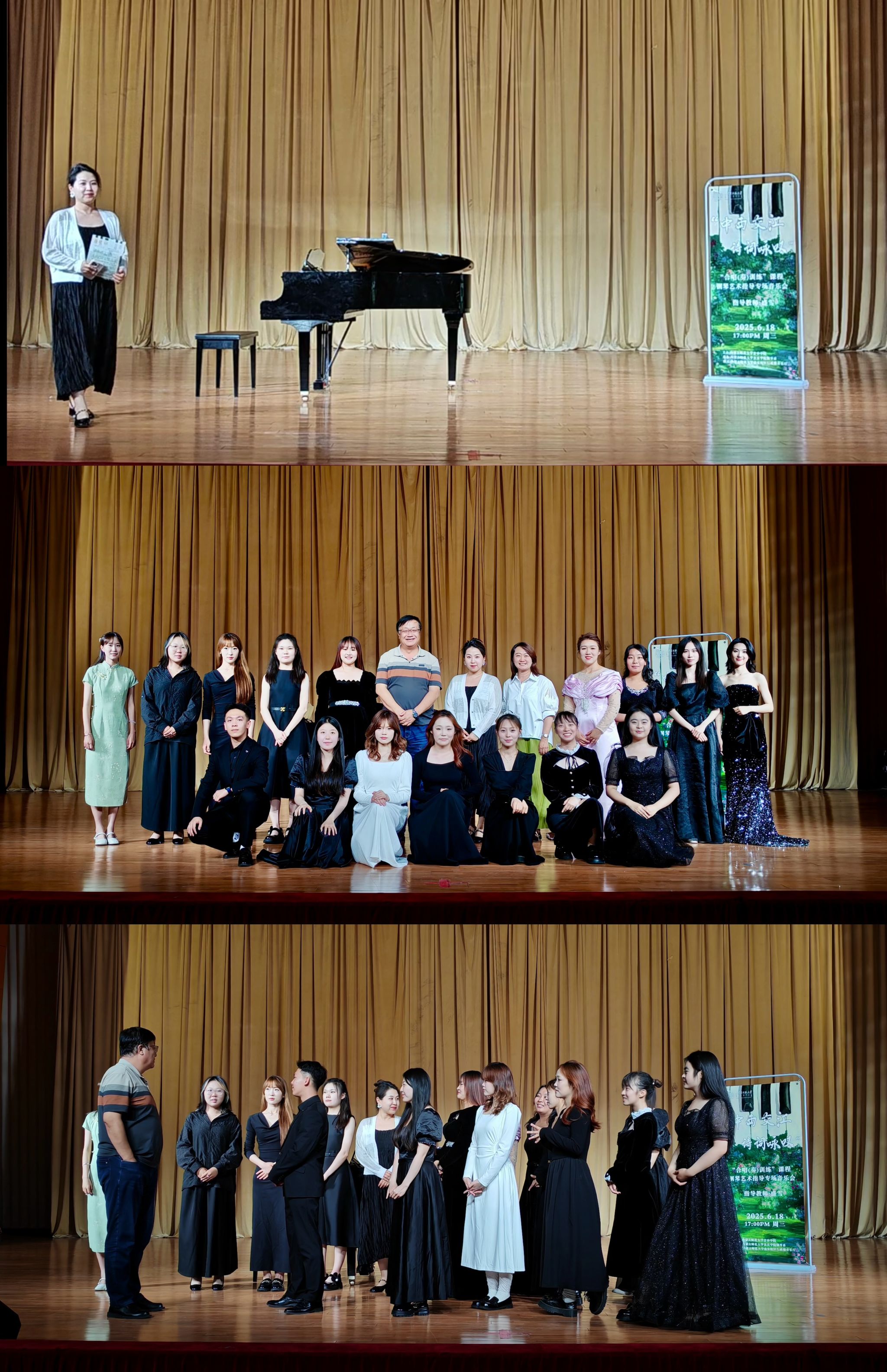 2025年6月18日17:00,一场别开生面的“中西交汇,诗词咏叹”钢琴艺术指导专场音乐会在3044永利集团盛乐校区行政楼音乐厅成功举办。钢琴系《合唱(奏)训练》课程指导教师盛雪带领本科二年级员工,与观众共同沉浸于这场跨越文化与时空的音乐盛宴。