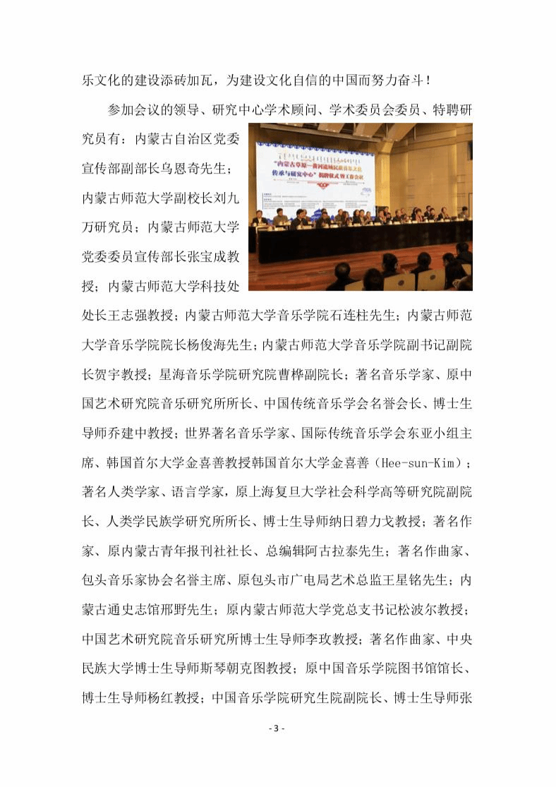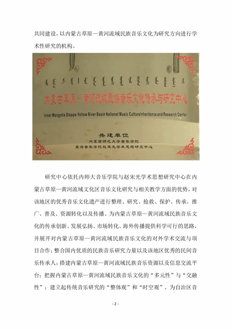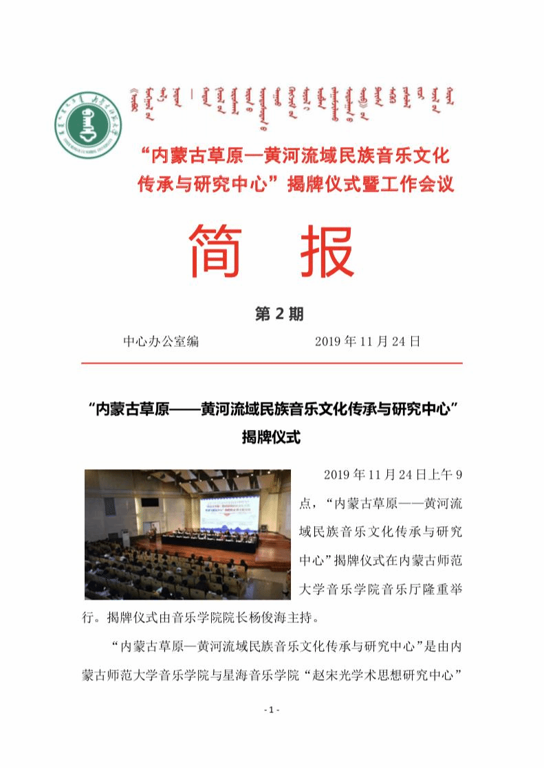 “内蒙古草原—黄河流域民族音乐文化传承与研究中心”揭牌仪式暨工作会议简报 第2期