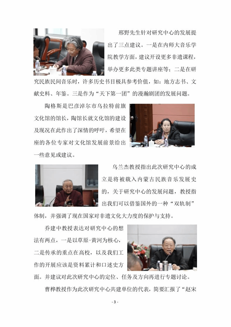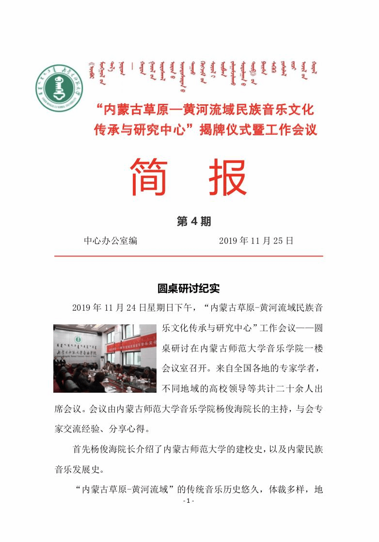 “内蒙古草原—黄河流域民族音乐文化传承与研究中心”揭牌仪式暨工作会议简报 第4期