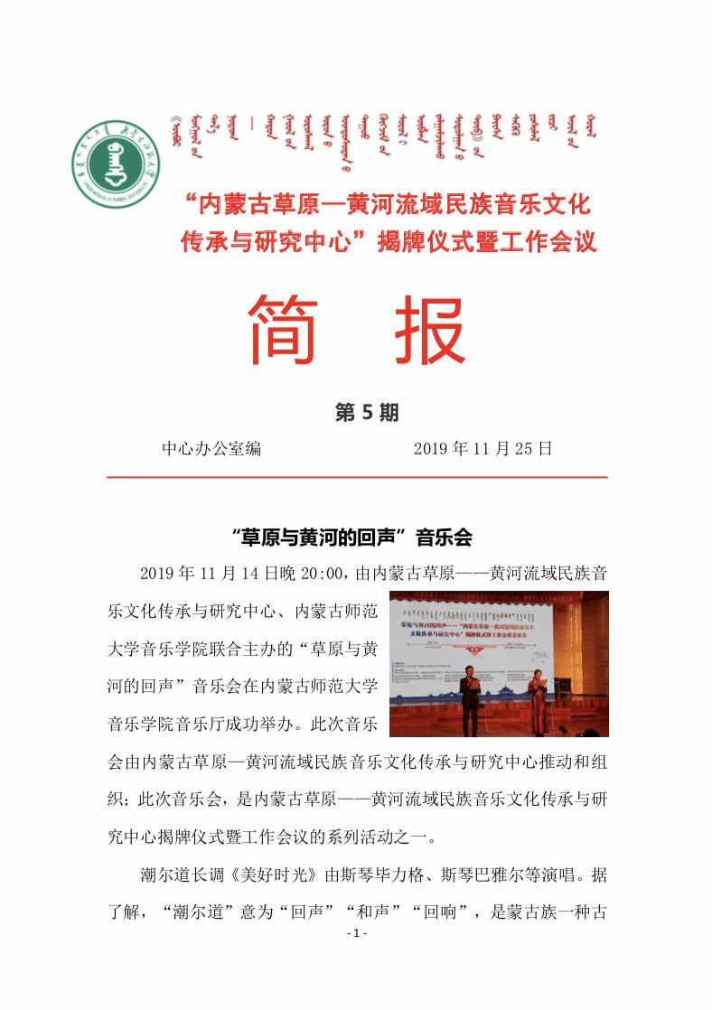 “内蒙古草原—黄河流域民族音乐文化传承与研究中心”揭牌仪式暨工作会议简报 第5期
