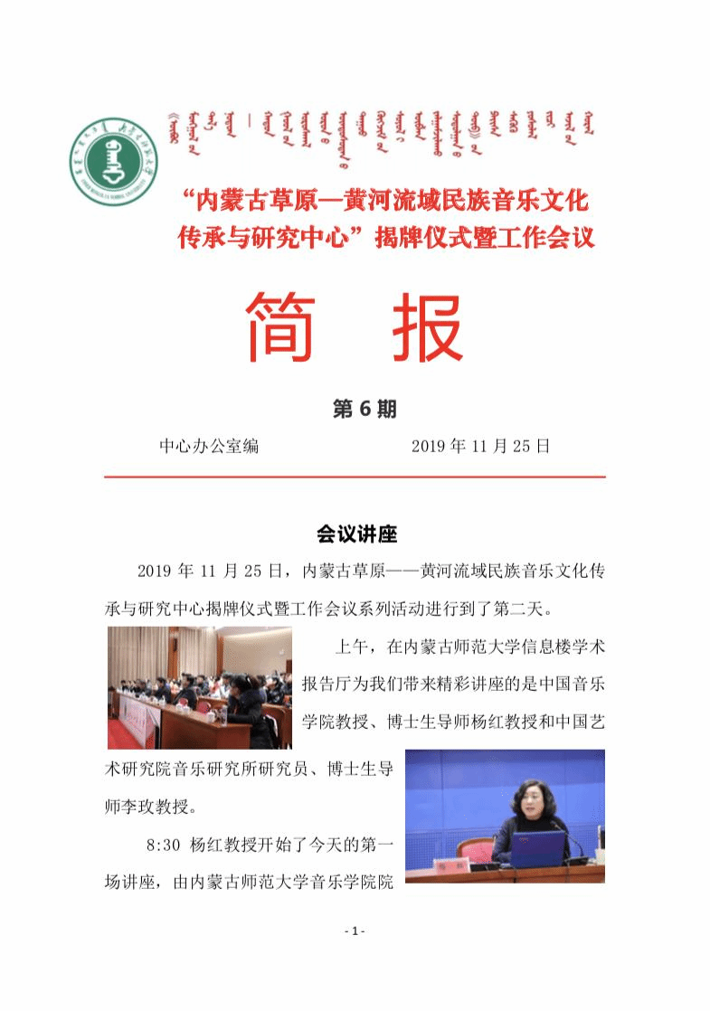 “内蒙古草原—黄河流域民族音乐文化传承与研究中心”揭牌仪式暨工作会议简报 第6期