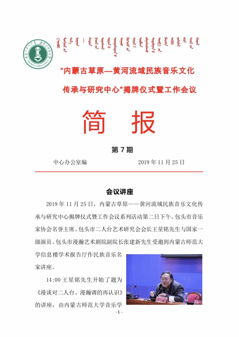 “内蒙古草原—黄河流域民族音乐文化传承与研究中心”揭牌仪式暨工作会议简报 第7期