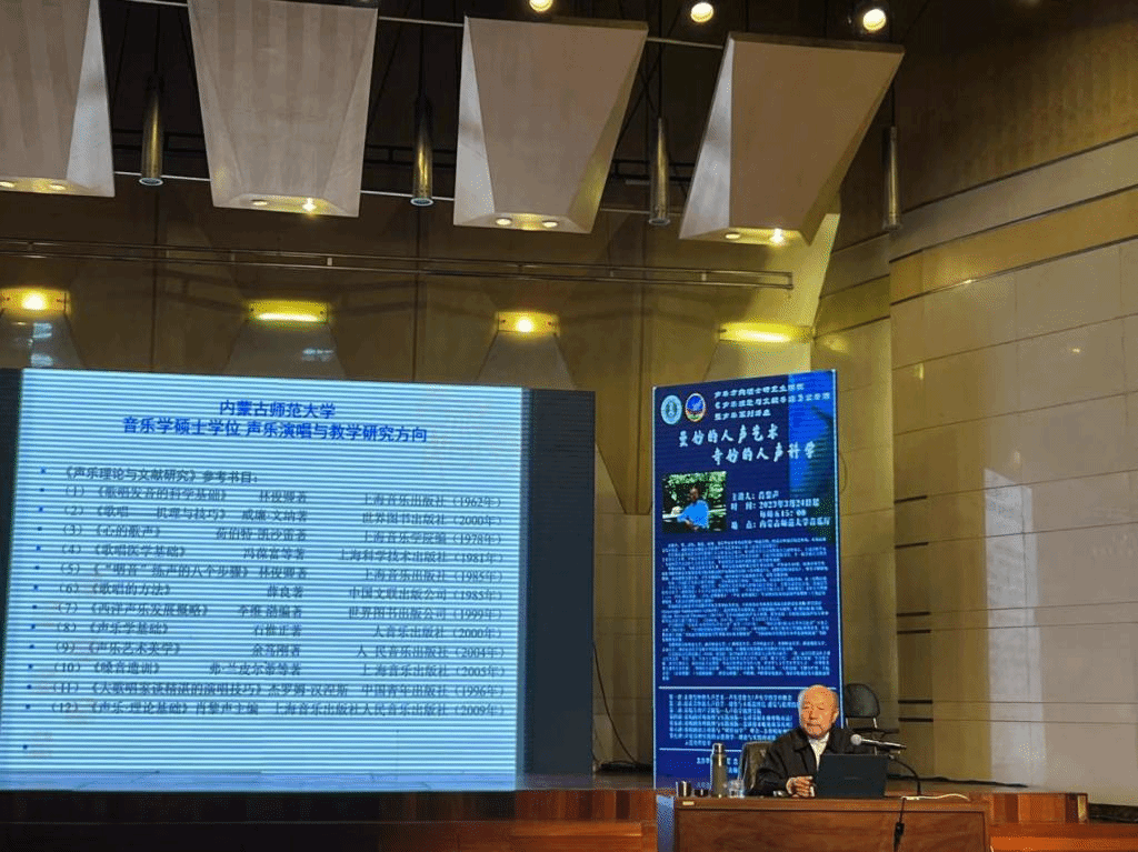 讲座临近尾声,肖黎声教授耐心地对员工们的疑问进行了一一解答,并且分享了一系列声乐书单,将国际声乐界共同研究总结的歌唱发声科学机理为大家展示演绎。肖老师提出,演唱的歌者必须具有良好的审美,通过老师的引导、好书籍的启迪,丰富自身的音乐修养、静心观摩聆听,走向正确的声乐演唱道路。肖老师的授课语言幽默风趣、通俗易懂。同学们纷纷表示,这场讲座不仅让大家了解和体会了声乐的含义及魅力,同时在艺术的表达与传递上也为大家打开了新的思路,在声乐艺术的研究与发展上深受启迪。肖老师以他独特的个人魅力、精湛的演唱技巧、渊博的学识为内师学子带来了一场“干货”满满的声乐讲座,感谢肖老师的精彩演讲。