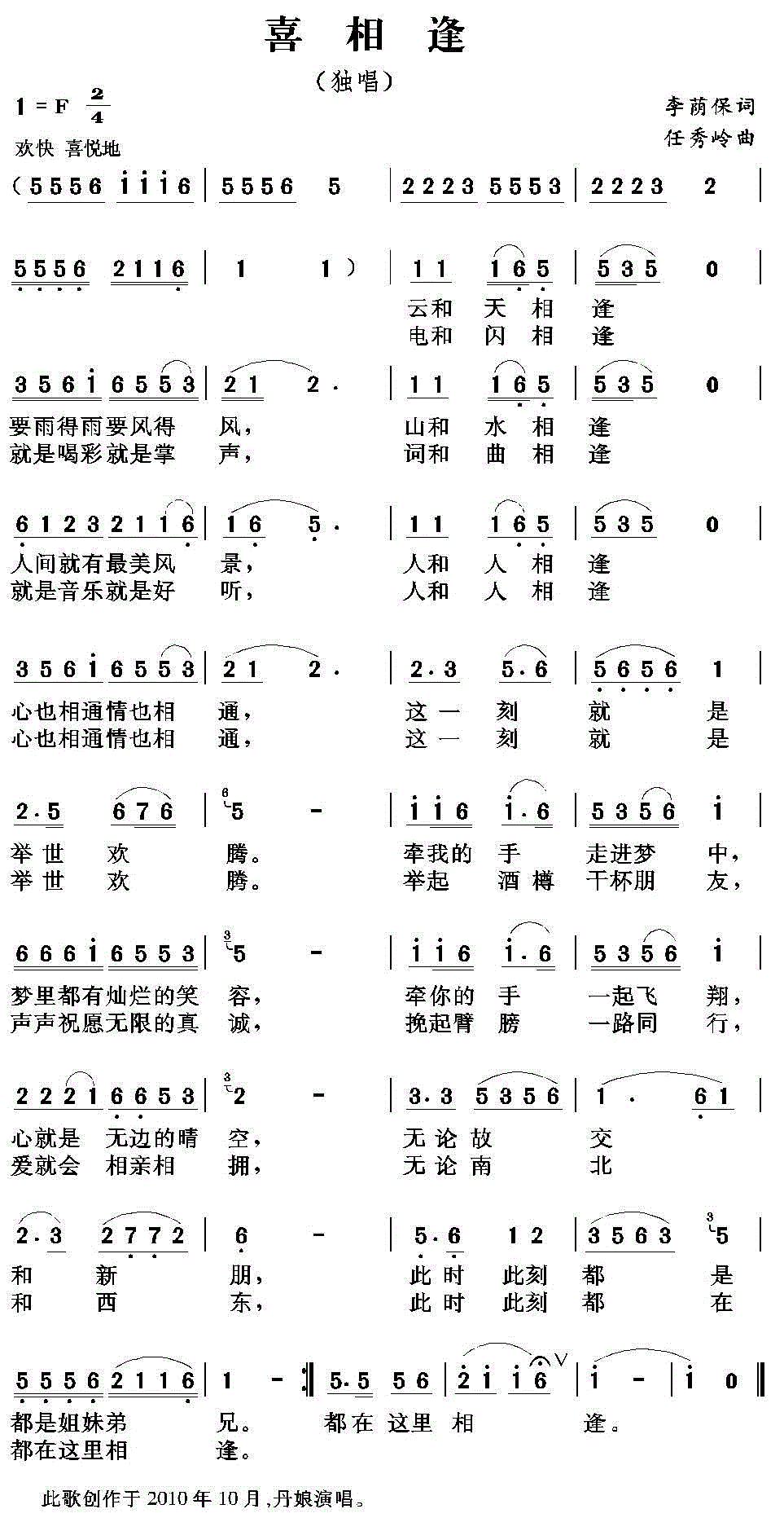 喜相逢是冯子存于20世纪50年代创作的一首 笛子独奏曲,乐曲的结构为民间器乐曲中常见的 变奏曲式。其原曲为内蒙古一首民间乐曲,后来流传到张家口一带,成为河北梆子和二人台等地方戏曲的过场音乐,常用于戏中角色入洞房、拂拭灰尘等动作的伴奏。经冯子存改编为笛子独奏曲,乐曲的结构为民间器乐曲中常见的 变奏曲式,表现一对情人惜别和重逢时的心情。 该曲于1953年由冯子存先生在第一届全国民间音乐舞蹈观摩汇演大会上首次公演。演出受到了来自全国各地听众的热烈欢迎,取得了巨大成功。由于这次演出是竹笛独奏作品首次在全国性的艺术大舞台上演奏,因而被认为是竹笛艺术发展史上的一次具有重大历史意义的里程碑。从此,竹笛被确立为一件独奏乐器,随之在全国各地相继出现了一大批具有很高艺术价值的竹笛独奏曲