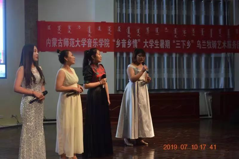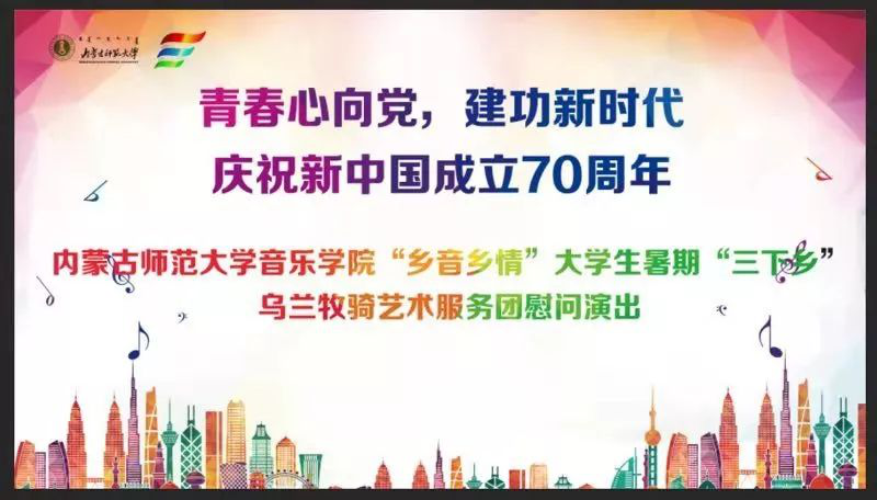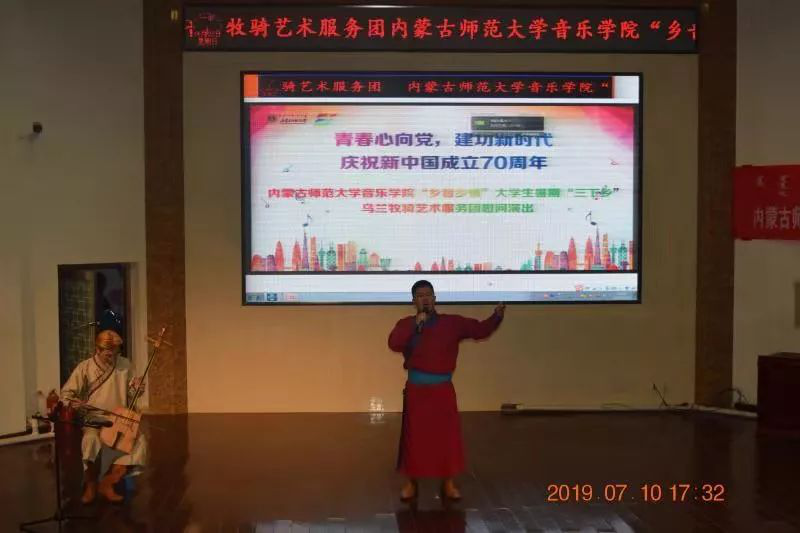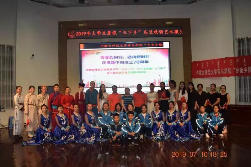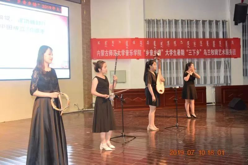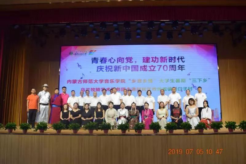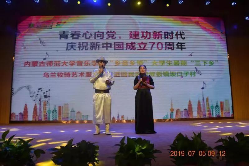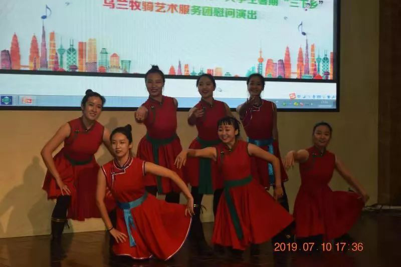 2019年7月5日上午、7月10日下午,由26名同学组成的“乡音乡情”老员工暑期“三下乡”乌兰牧骑艺术服务团开启了此次活动的先导演出篇,“青春心向党,建功新时代”庆祝新中国成立70周年,乌兰牧骑服务团分别走进攸攸板镇坝口子村和四子王旗第一中学。